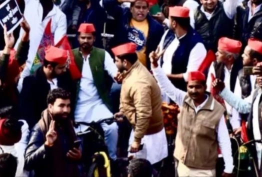 राष्ट्रीय युवा दिवस के अवसर पर समाजवादी पार्टी के कार्यकर्ताओं ने साइकिल यात्रा निकाली