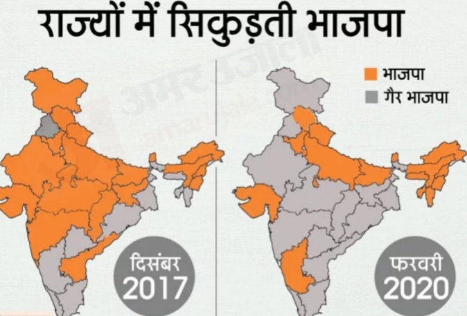 मार्च 2018 में 21 राज्यों में एनडीए की सरकार थी जो अब सिमटकर 16 राज्यों में ही रह गई।