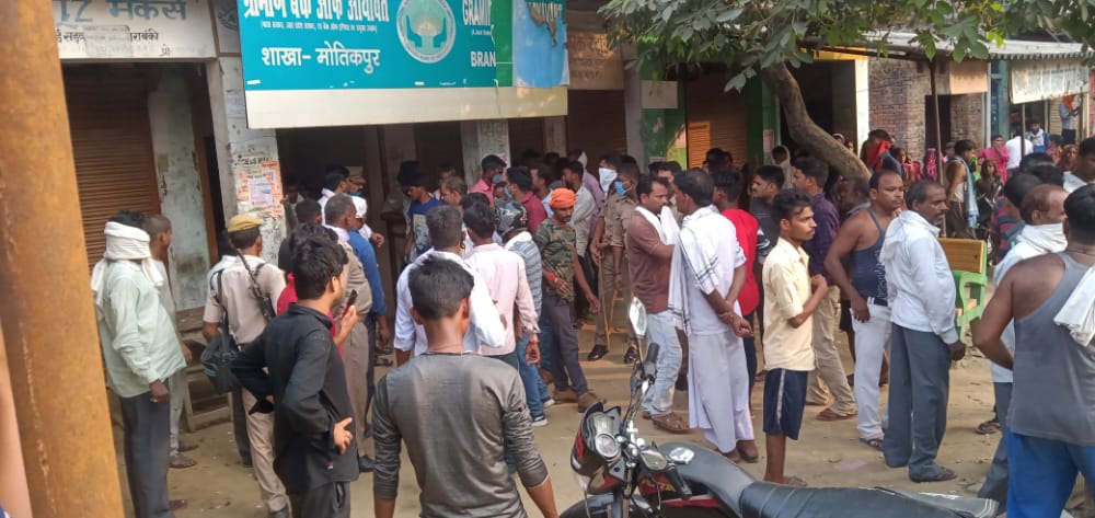 जानकारी के अनुसार ग्राम पूरे टोडी मजरे पैगंबरपुर निवासी रामराज पुत्र गंजई उर्फ इनई लगभग 45 वर्ष का खाता आर्यव्रत ग्रामीण बैंक शाखा मोतीपुर में है। कागजों में नाम किन्ही कारणों बस गलत अंकित हो गया था। कागजों को सही करा कर कैंसर पीड़ित दिव्यांग रामराज आज शुक्रवार को आर्यावर्त ग्रामीण बैंक दवा के लिए पैसे निकालने गया हुआ था। लेकिन शाखा प्रबंधक कागज सही होने के बावजूद भी उसका पैसा नहीं निकाला गया। जिससे कैंसर पीड़ित रामराज की बैंक के सामने मौत हो गई। मौत की खबर सुनते ही क्षेत्रीय लोग एकत्रित हो गए और हैदरगढ़ नई सड़क मार्ग जाम कर दिया। मार्ग जाम की सूचना पाकर मौके पर पहुंची पुलिस ने किसी तरह समझा-बुझाकर भीड़ को काबू किया।