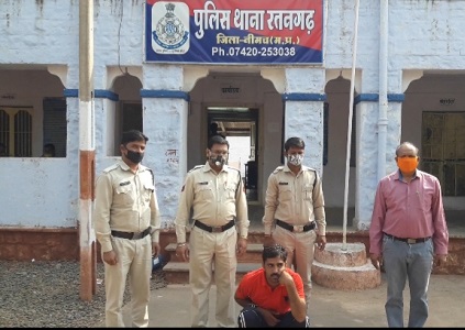 पुलिस थाना रतनगढ़ पुलिस टीम द्वारा दिनांक 01/11/20 को मुखबिर सूचना के आधार पर मानपुरा फन्टा, मानपुरा पर नाकाबन्दी की जाकर आरोपी विष्णु कुमार पिता ष्यामसुन्दर उर्फ ष्यामलाल जाति सोनी उम्र 32 साल निवासी नई आबादी बैगू पुलिस थाना बैगू जिला चित्तौडगढ (राजस्थान) के कब्जे वाली बिना नम्बर की अल्टो कार से परिवहन करते हुए 03 काले रंग के प्लाटिस्क कट्टों में भरा हुआ कुल 60 किलोग्राम अवैध मादक पदार्थ डोडाचूरा जप्त कर आरोपी विष्णु कुमार सोनी को गिरफ्तार किया जाकर आरोपी के विरुद्व थाना रतनगढ पर अपराध क्रमांक 183/2020 धारा 8/15 एनडीपीएस एक्ट का पंजीबद्व कर विवेचना मे लिया जाकर आरोपी विष्णु कुमार सोनी से अवैध मादक पदार्थ डोडाचूरा के स्त्रौत के संबंध में प्रकरण में विवेचना जारी है।