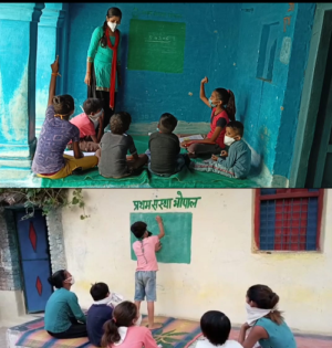 गुनौर:–कोरोना संक्रमण में बच्चो की सुरक्षा को ध्यान में रखते हुए और उनकी पढाई प्रभावित न हो, इसके लिए प्रथम संस्था द्वारा गाँव गाँव में घर घर ब्लैक बोर्ड गाँव वालो और सरपंच की मदद से बनाया जा रहा है | जिसके माध्यम से बच्चे आसानी से अपनी पढाई जारी रख सकें |स्कूल बंद होने के कारण छात्र छात्राओ को शिक्षा से जोड़ने के लिए प्रथम संस्था द्वारा लॉक डाउन के बाद के समय से ही गाँव में जाकर और फ़ोन के माध्यम से अभिभावकों और गाँव के अन्य सदस्यों को शिक्षा के प्रति जागरूक कर रहे हैं |