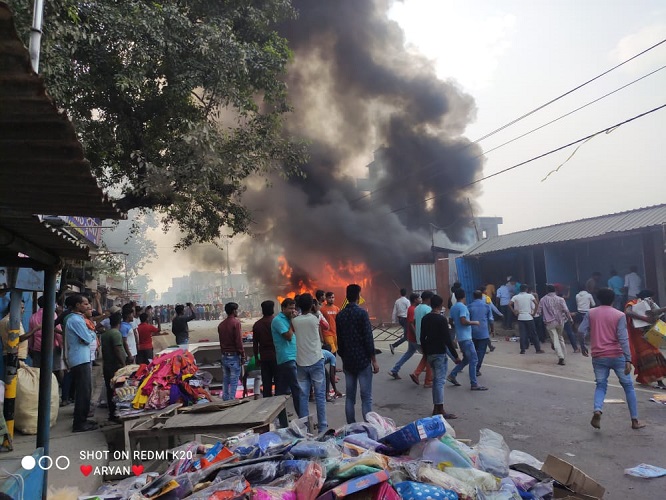 देवरिया का समीपवर्ती जिला सिवान के मैरवां मे मंगलवार को दोपहर बाद अचानक आग लग गयी । यह आग लगने की घटना पहले भी उसी दुकान मे हो चुकी है पहले आग रुई ब्यापारी शम्भू प्रसाद के दुकान मे लगी उसके बाद आग अगल बगल के अन्य कपडो की दूकान मे पकड लिया । यह आग लगने की घटना बार – बार प्रश्नचिन्ह खडा कर रहा है कि उस दुकान मे बिजली का कनेक्शन भी नही है । यह आग बार-बार उसी दुकान मे क्यो लगती है यह जांच का बिषय है ।