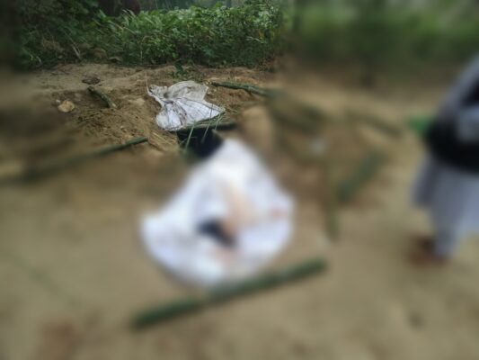 कुशीनगर। रामकोलाथाना क्षेत्र के देवरिया बाबू जोलहापट्टी में 28 वर्षीय महिला का कब्रिस्तान में दफनाए जाने के 6 दिन बाद शुक्रवार की रात किसी अज्ञात ब्यक्ति ने कब्र से बाहर निकाला उसका हाथ काट लिया ,घटना स्थल पर तांत्रिक सिद्धि हेतु पूजा करने का भी सामग्री मिली है ।परिवार के लोग व ग्रामीण पहुंचकर देखा और घटना की सूचना स्थानीय पुलिस को दिया ,पुलिस घटना स्थल पर पहुच कर मामले की छान बीन में जुट गई है।
