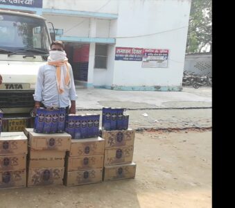 क्रेन से भारी मात्रा में अवैध शराब बरामद एक गिरफ्तार