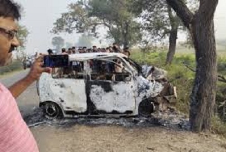 दर्दनाक हादसा, दुर्घटनाग्रस्त गाड़ी में आग लगने से 3 लोगों की जलकर मौत