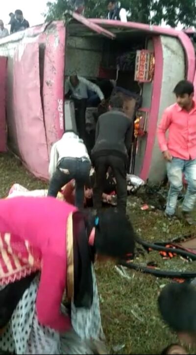 चित्रकूट जा रही यात्री बस पलटी, दर्जन भर यात्री घायल