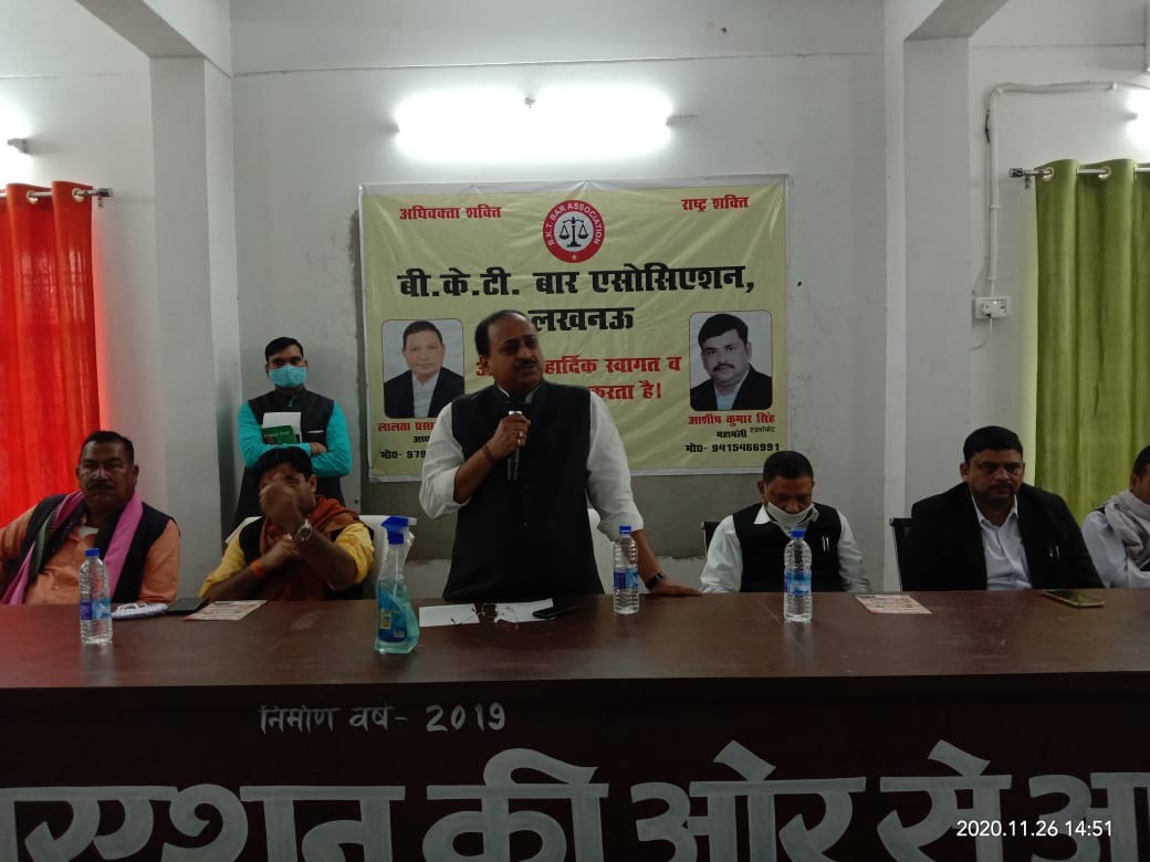 बी के टी-राजधानी लखनऊ के तहसील बीकेटी परिसर के अधिवक्ता सभागार विधायक अविनाश त्रिवेदी व भारतीय जनता पार्टी के विधान परिषद सदस्य प्रत्याशी अवनीश कुमार सिंह की उपस्थिति में सभा का आयोजन किया गया। अधिवक्ता सभागार बीकेटी बार एसोसिएशन में सभी स्नातक मतदाताओं के साथ में एक सभा का आयोजन किया गया,