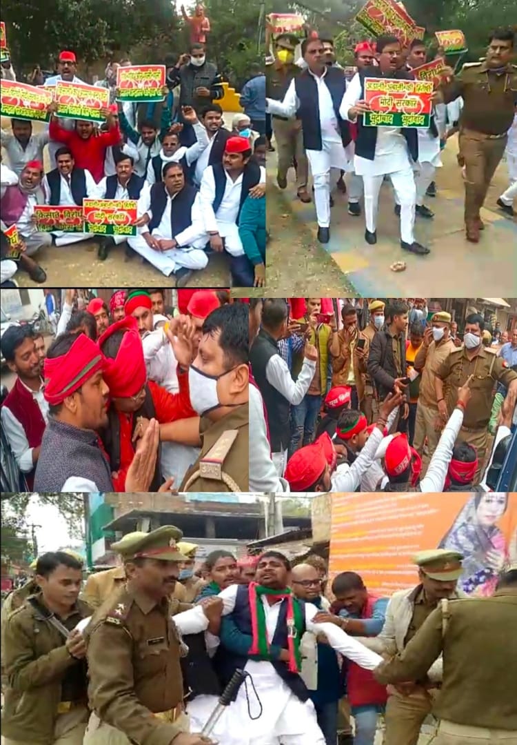 प्रदर्शन कर रहे सपाईयों को पुलिस ने किया गिरफ्तार