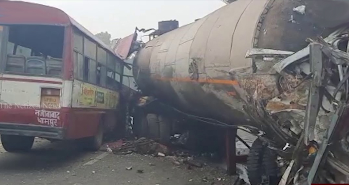 यूपी : भयंकर सड़क हादसा, रोडवेज बस और टैंकर की टक्कर मे 8 लोगों की मौत
