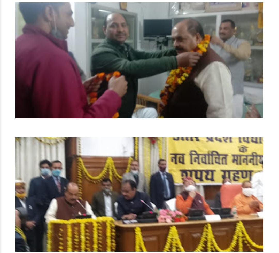 अम्बेडकर नगर। को हुए शिक्षक निर्वाचन में निर्वाचित प्रतिनिधियों का 18 दिसम्बर 2020 को लखनऊ विधान मण्डल के तिलक हाल में उ0प्र0 मुख्यमंत्री योगी आदित्यनाथ की उपस्थिति में सपथ ग्रहण समारोह का आयोजन हुआ।तीन बार से लगातार एमएलसी का चुनाव जीतने वालें ध्रुब कुमार त्रिपाठी जैसे ही सपथ लिए तालियों से गड़गड़ाहट से हाल गूंज उठा।श्री त्रिपाठी के विधायक आवास पर पूरे प्रदेश से आये हुए शिक्षको ने गुलदस्ता व माला पहनाकर बधाई दिए।अम्बेडकर नगर के शिक्षक संघ के अध्यक्ष राजा राम वर्मा,जिला मंत्री अजय यादव,प्रधानाचार्य शालिक राम वर्मा,राम तीर्थ विश्वकर्मा,सुशील कुमार,मौर्य केसी वर्मा, साकेत विहारी वर्मा,रवीन्द्र वर्मा आदि लोगों ने अम्बेडकर नगर के शिक्षकों की तरफ से बधाई दिए।