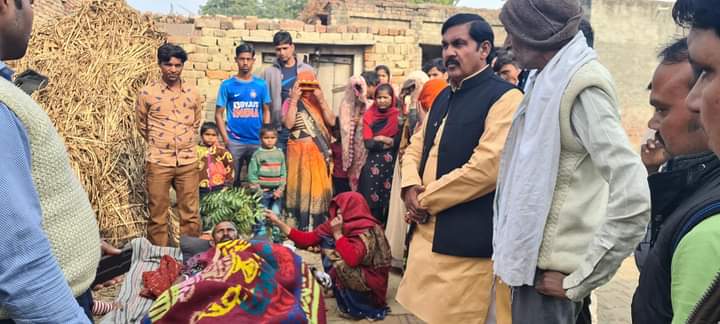 अलीगढ़ :- अतरौली विधानसभा क्षेत्र के ग्राम सभा नगला मैया बंजारा कसेर में एक गरीब परिवार के घर में आग लग गई थी जिसमें घरेलू वस्तुओं सहित भैंस बकरी जल गई थी जिसकी सूचना कई नेताओं के पास भी पहुंची और वह नेता पहुंचे भी थे लेकिन गरीब परिवार को आश्वासन देकर वापस लौट आए !