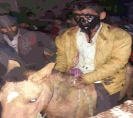 यूपी : महिला से जबर्दस्ती कर रहे आरोपी को घर वालों ने धुना, मुह काला कर गधे पर पूरा गाँव घुमाया