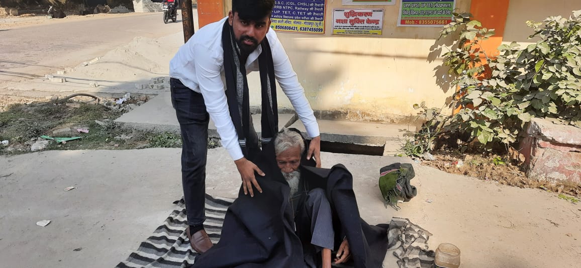 युवा मोर्चा भाजपा के ब्लॉक अध्यक्ष एवं युवा सेना संस्थान के कार्यकर्ताओं ने गरीब बेसहारों के बीच किया कंबल वितरण
