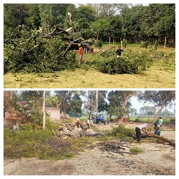 प्राप्त जानकारी के अनुसार थाना असंद्रा क्षेत्र में शनिवार को जमकर प्रतिबंधित पेड़ काटे गए इस कटान में सबसे बड़ा योगदान वन विभाग का रहा क्षेत्र के पूरे समधी खेवराजपुर, लकड़ियां बाबा का पुरवा इमामगंज रतौली में हरियाली के रक्षक ही हरियाली को नष्ट कराने में हर प्रकार से सहयोग करते आ रहे हैं और शनिवार को भी दुधारू हरे भरे पेड़ कटवा डाले आए दिन समाचार पत्रों के माध्यम से हमें ज्ञात होता है कि रात के अंधेरे में, दिन दहाड़े वन माफियाओं द्वारा प्रतिबंधित पेड़ों पर आरा चला दिया जाता है