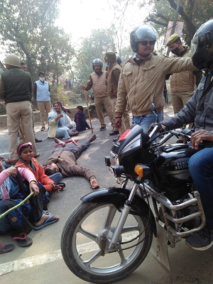 मारपीट के बाद कुनबे के साथ सड़क पर लेट गया युवक