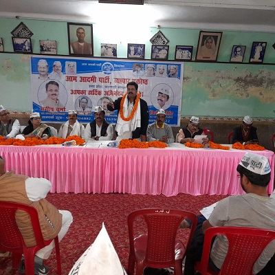 आज के कार्यक्रम में आम आदमी पार्टी के नीतियों से प्रभावित होकर कई व्यापारियों ने पार्टी में आस्था व्यक्त किया जिन को प्रदेश अध्यक्ष मनीष वर्मा जी ने पार्टी की टोपी पहना कर सदस्यता प्रदान की प्रदेश सचिव देव कांत वर्मा जी और प्रदेश प्रवक्ता मुकेश सिंह जी ने उपस्थित लोगों को संबोधित करते हुए कहा कि भाजपा राज्य में चारों ओर हाहाकार मचा हुआ है लोगों के थाली से रोटी छिन गया है बेरोजगारी बढ़ती जा रही है