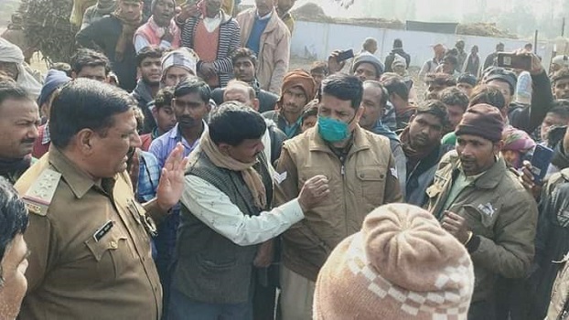 गन्ना किसान से मारपीट और अभद्र व्यवहार करने के चलते किसानों ने सवा 2 घंटे जमकर काटा हंगामा,चीनी मिल की पेराई रही बंद,पुलिस ने पहुंचकर कर्मचारी से मंगवाई माफी,गन्ना तौल हुई शुरू।