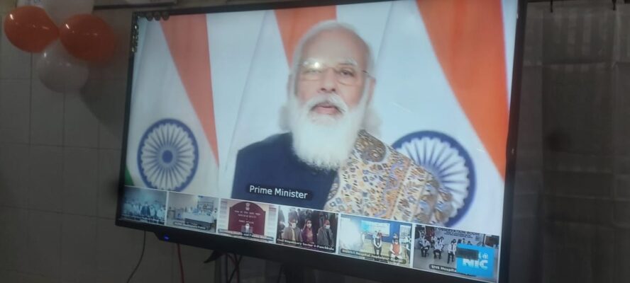 कोविड वैक्सीन के शुभारंभ के अवसर पर मा. प्रधानमंत्री जी के संबोधन का किया जा रहा है लाइव प्रसारण