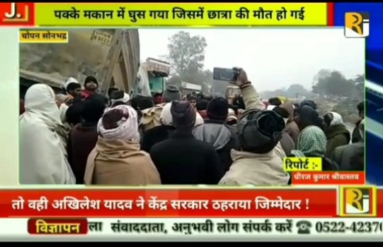 सोनभद्र :अनियंत्रित होकर हाइवा घर में घुसी,छात्रा की मौत