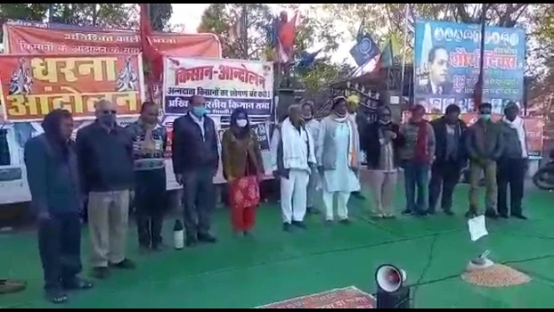 सिवनी/ तीन काले किसान विरोधी कृषि बिलों की वापसी व न्यूनतम समर्थन मूल्य गारंटी कानून बनाये जाने ,सिवनी जिले के किसानों को अपनी उपज मक्का के 1850 की भरपाई की मांग को लेकर संविधान निर्माता बाबा साहब अम्बेडकर प्रतिमा स्थल के समक्ष अंबेडकर चौक में बैठे |