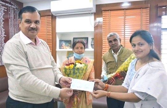 पन्ना कलेक्टर ने गौरी अरजरिया को किया 25 हजार की राशि से सम्मानित