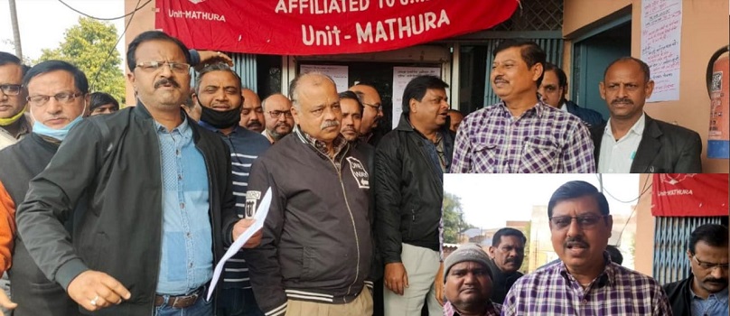 मथुरा : बीमा क्षेत्र में विदेशी निवेश बढाने के विरोध में हड़ताल