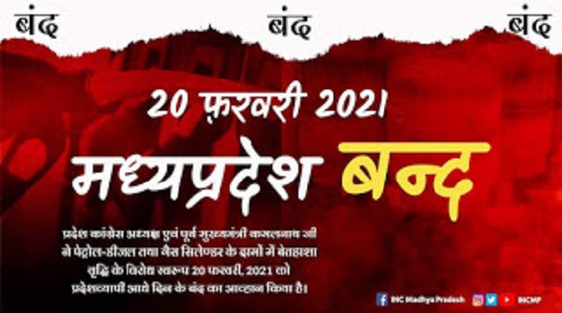 पेट्रोल डीजल के बढ़ते दामो के खिलाफ 20 फरवरी को कांग्रेस का प्रदेश बंद।