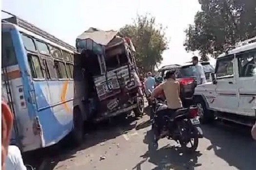 उज्जैन के नज़दीक चंदूखेड़ी में आज एक दर्दनाक हादसा हो गया.यहां ट्रक और बस की भीषण भिड़ंत हो गयी.इसमें दो दर्जन से अधिक यात्री सहित ट्रक और बस का ड्राइवर घायल हो गये.टक्कर इतनी भीषण थी कि बस और ट्रक अलग करने के लिए जेसीबी मशीन मंगवानी पड़ी | खबर मिलते ही पुलिस अफसर भी मौके पर पहुंच गए और फौरन राहत कार्य शुरू किया।