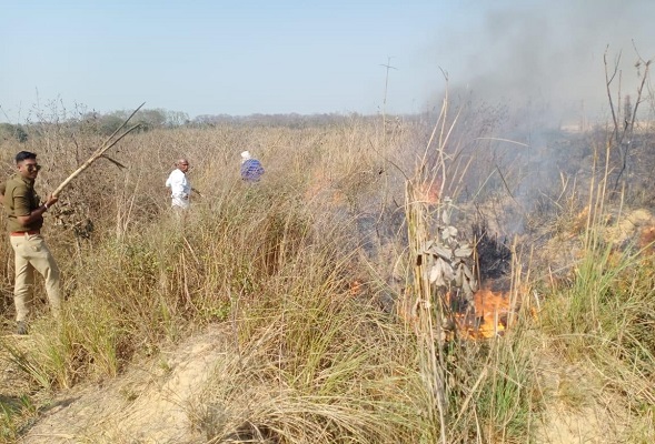 जिसके आने से पहले ही आग बहुत तेज बढ़ चली थी। यह देखते हुऐ खंडासा चौकी के सिपाहियों ने अनुज कुमार, राहुल जयसवाल, दिनेश यादव ने लाठी व जंगल से बंछी तोड़ तोड़ कर आग पर काबू पाकर जंगल को जलने से रोका गया।तब तक फायर सर्विस भी मौक़े पर पहुंची।चौकी इंचार्ज खंडासा अभिषेक त्रिपाठी भी घटना स्थल पर पहुंचे। होने वाली गंभीर नुकसान को खंडासा चौकी टीम ने अपनी मेहनत से बचा लिया ग्राम प्रधान कार्यकर्ता व ग्रामीण भी मौजूद रहे।