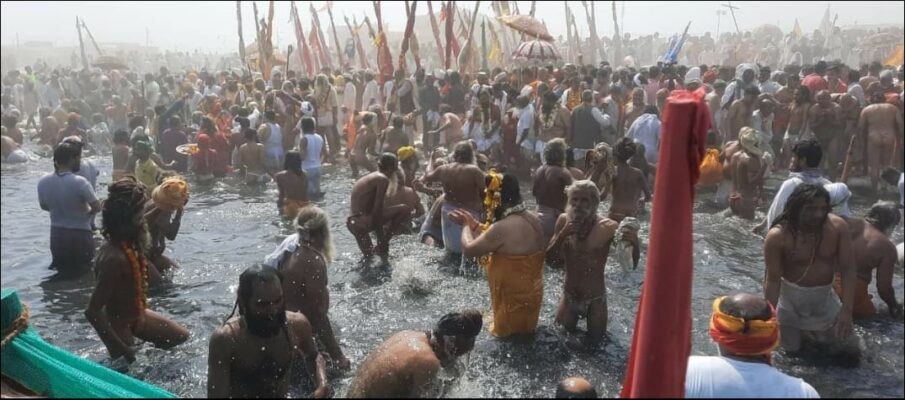 वृंदावन कुंभ मेला में हुआ प्रथम शाही स्नान, यमुना तट पर उमड़ा आस्था का सैलाब