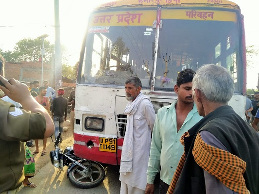 रोडवेज बस ने बाइक में पीछे से मारी टक्कर तीन घायल