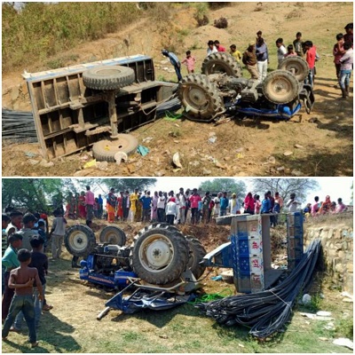 ट्रैक्टर जैसे ही रोरवा गांव पहुंची वहा हल्की ढाल होने की वजह से ट्रैक्टर अनियंत्रित हो कर लगभग दस फिट खाई में नीचे जा पलटी वहीं ट्रैक्टर सवार कचनरवा निवासी सिलेसर सिंह ट्रैक्टर अनियंत्रित होते देख कूद गया लेकिन कचनरवा के टोला हड़वरिया निवासी दो सगे भाई 32 वर्षीय फेकन व 30 वर्षीय देवी दयाल पुत्र स्व. रामा भुइया ट्रैक्टर के इंजन के नीचे दब गए |
