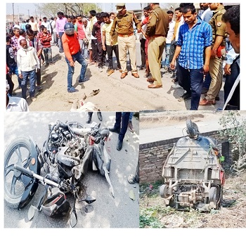 टेंपो व बाइक की आमने-सामने की टक्कर में एक की गई जान व कईयों को किया गया अस्पताल रिफर