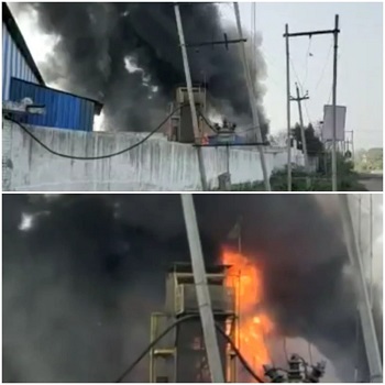 संदिग्ध परिस्थितियों में टायर फैक्ट्री में लगी भीषण आग
