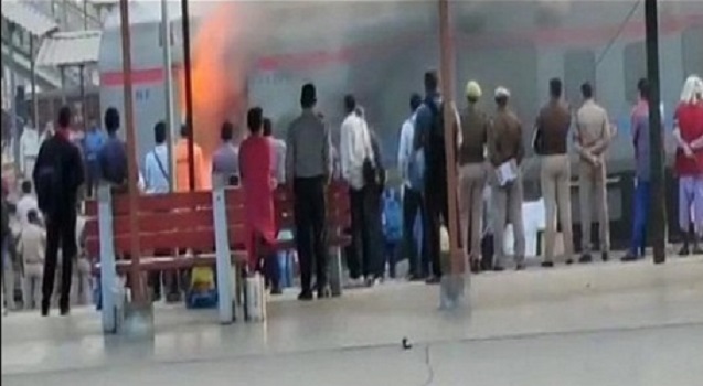दिल्ली-लखनऊ शताब्दी के पार्सल यान में लगी भयंकर आग