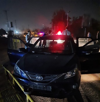 वरिष्ठ पुलिस अधिकारी ने बताया, ”तड़के करीब चार बजकर 50 मिनट पर पुलिस को रिंग रोड की तरफ से नीली कार आती दिखाई दी, उन्होंने अवरोधक लगाकर वाहन को रोकने की कोशिश की लेकिन कार चालक ने अवरोधक में टक्कर मार दी और भागने की कोशिश के दौरान पुलिस पर गोलीबारी शुरू कर दी।