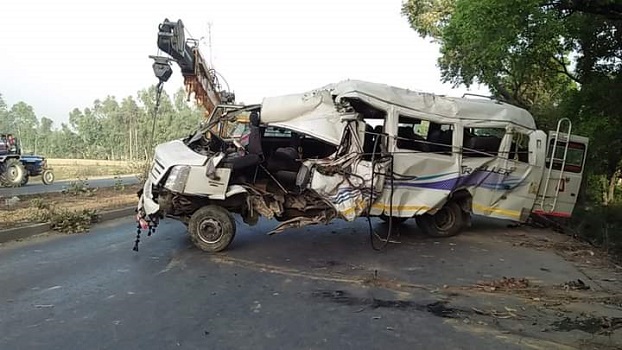 उत्तर प्रदेश के शाहजहांपुर में उस समय अफरा तफरी मच गई जब चंडीगढ़ से आ रही यात्रियों से भरी मिनी बस तिलहर थाना क्षेत्र के एन एच 24 पर फिरोजपुर गॉंव के पास अनियंत्रित होकर खाई में अचानक पलट गई और सड़क किनारे पेड़ से जा टकराई हादसे में 2 यात्रियों की मौके पर मौत हो गयी तो वही 7 लोग घायल हो गए जिसमे 2 लोग गंभीर रूप से घायल हुए उनको जिला अस्पताल में भर्ती कराया गया जहाँ उनका इलाज चल रहा है बताया जा रहा है हादसा सुबह का है और चालक को झपकी आने पर हादसा हुआ |
