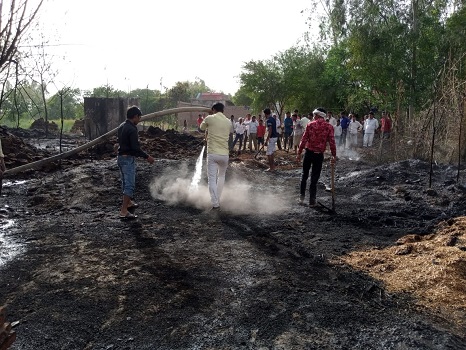 रामबरन अपने परिवार के साथ घर पर थे। मंगलवार दोपहर बैठक के पास पड़े कूड़े के ढेर में किसी ग्रामीण ने आग लगा दी। आग की चिंगारी बैठक में पड़े छप्पर पर जा गिरी। जिससे रामबरन की झोपडी में आग लग गयी। आग की लपटें देख ग्रामीणों ने मिट्टी पानी आदि डालकर आग बुझाने का प्रयास किया।