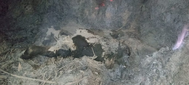 गन्ने की पत्तियों के नीचे जलता मिला शव