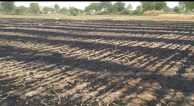 जैंत-गेहूं की खड़ी फसल में अचानक लगी आग, आग में चार बीघा फसल जलकर हुई राख