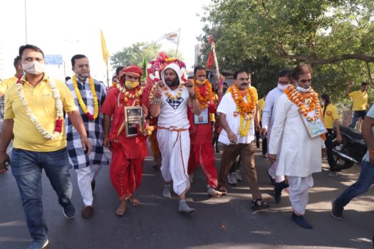 रणजीत महेश पाठक के नेतृत्व में यमुना कलश पदयात्रा दिल्ली पहुंची, जगह जगह हुआ जोरदार स्वागत