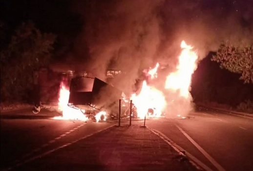 पिकअप का अगला हिस्सा ट्रक के ईंधन टैंक से टकराने के कारण अचानक आग लग गई। आग इतनी भीषण थी कि दोनों वाहन धू-धू कर जलने लगे।