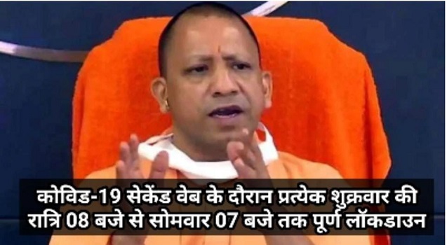 उत्तर प्रदेश के मुख्यमंत्री योगी आदित्यनाथ ने मंगलवार को उच्च स्तरीय बैठक कर महामारी कोरोना वायरस के बढ़ते संक्रमण को रोकने के उद्देश्य से शनिवार व रविवार को पूरा लॉक डाउन करने का एलान किया।