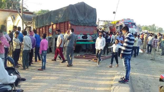 दो ट्रकों की हुई आपस में भिडंत, ट्रेन ने रौंदा