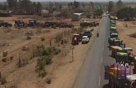 सिहोरा-रैपुरा मार्ग पर पटोरी तिराहा के समीप दो सौ से ज्यादा ट्रैक्टरों की कतार।