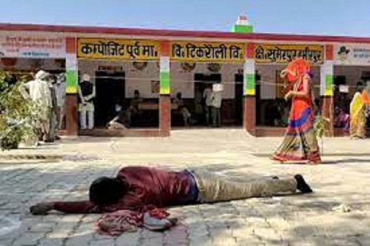 हमीरपुर : जमीन पर बेहोश पड़े मतदान कर्मचारी की सुध लेने वाला कोई नहीं