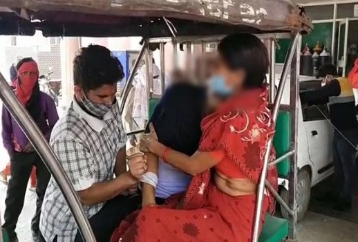 एंबुलेंस या शव वाहन न होने पर पति के शव को ई-रिक्शा ले कर पहुंची बुज़ुर्ग महिला