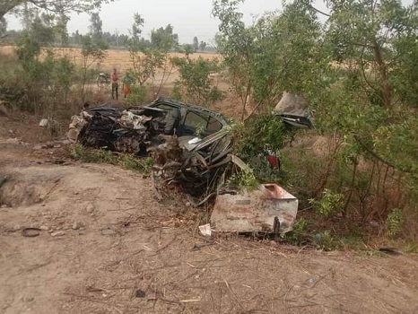नेशनल हाइवे पर कार पेड़ से टकराई, पांच की मृत्यु, एक घायल