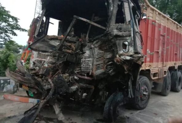 ट्रक-डम्पर की जोरदार भिड़ंत, चलाक व खलासी की जलकर हुई मौत