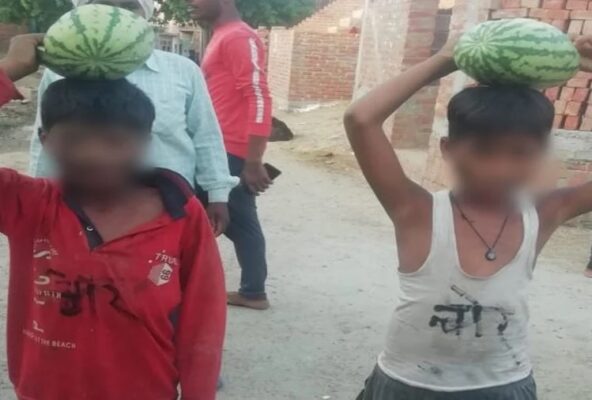कन्नौज : दबंगों ने किशोरों को दी अनोखी सजा, कपड़ों पर लिखा चोर व सर पर तरबूज रख पूरे गांव में घुमाया